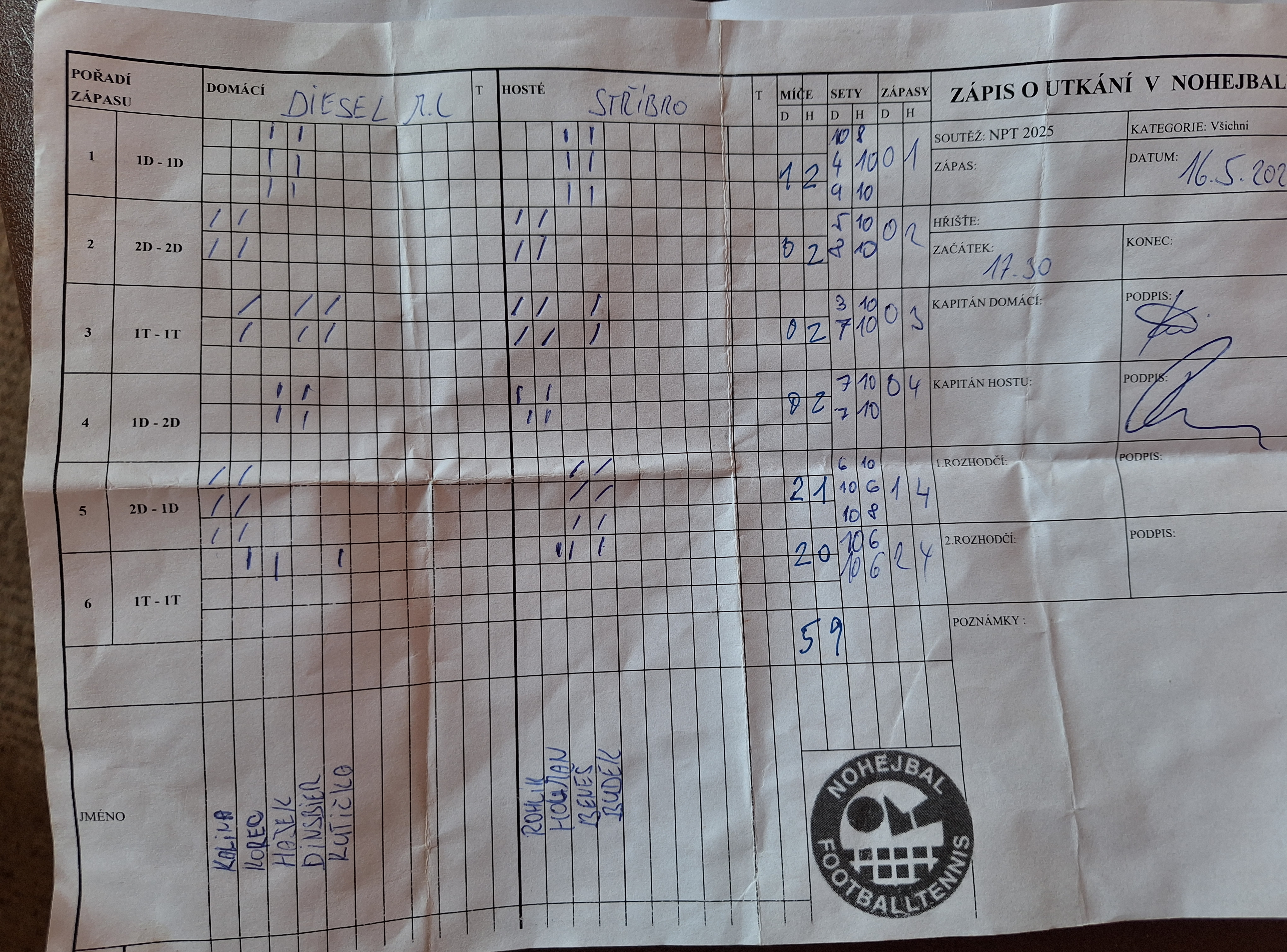 🎾 6. kolo nohejbalového přeboru + dohrávka 2. kola: Vládne výsledková symetrie