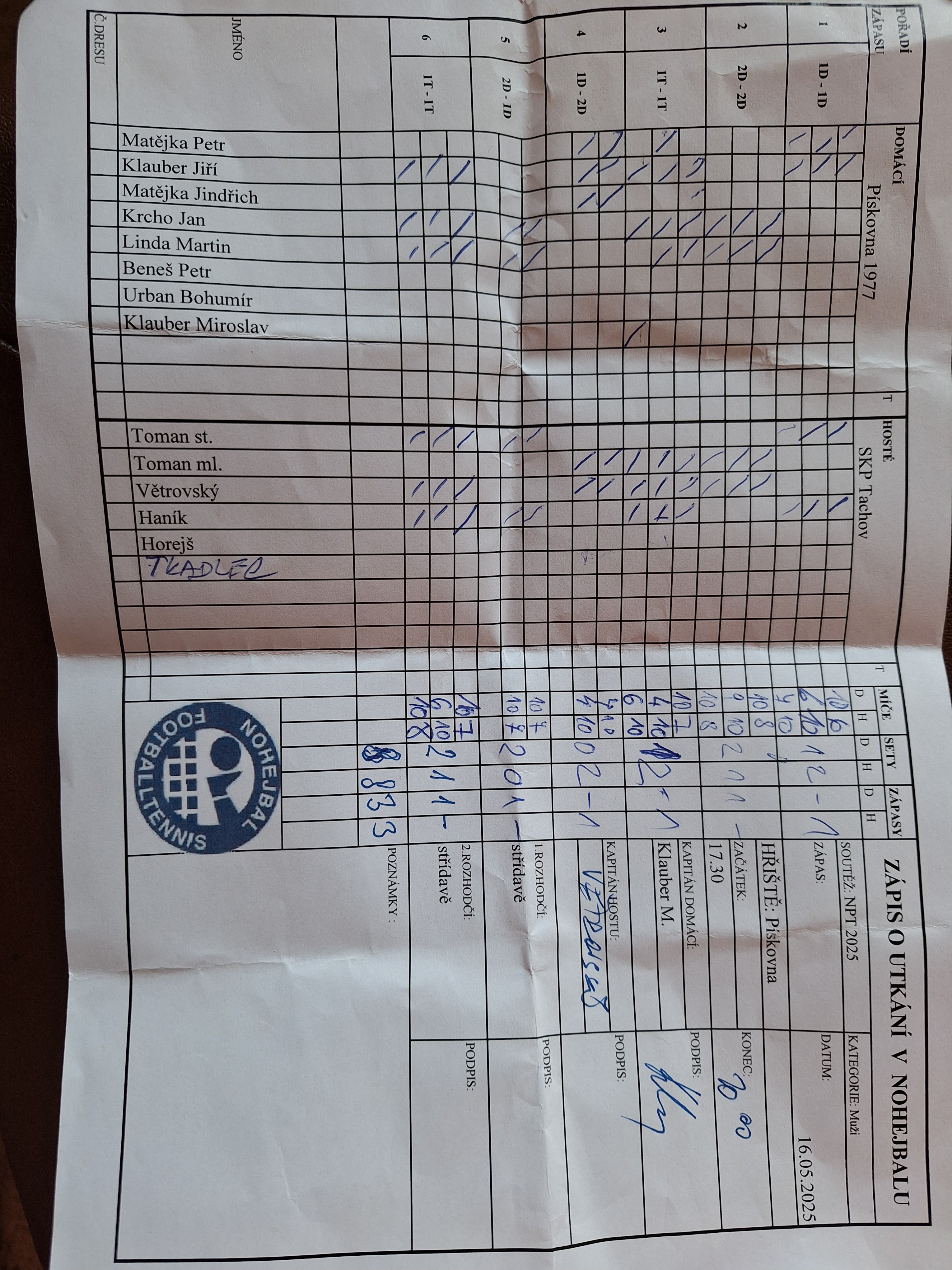 🔸 Pískovna 1977 – Diesel Mariánské Lázně 4 : 2 (9:5)