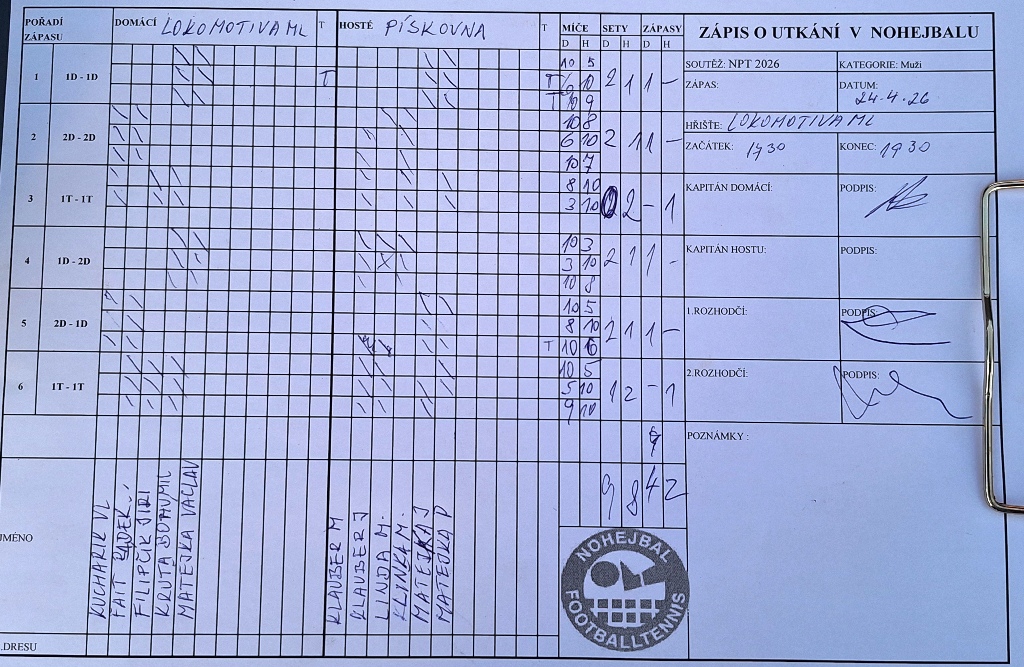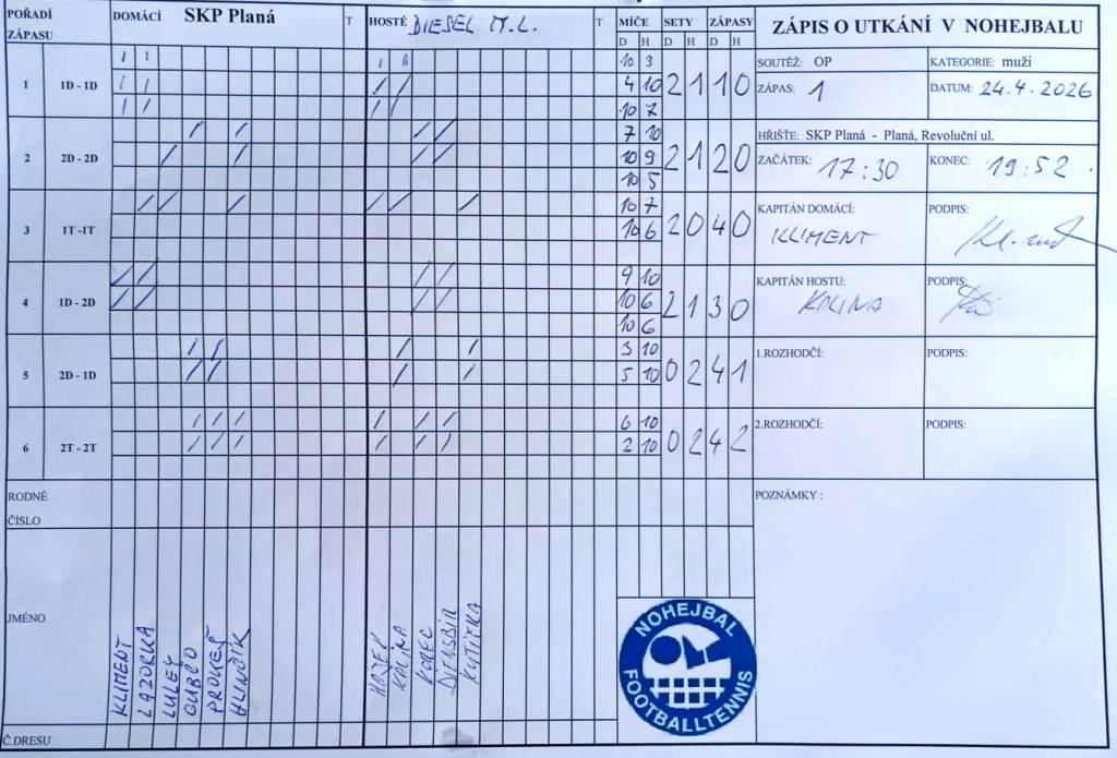 Pískovna potvrdila vyrovnanost ve všech disciplínách — vyhrála dva z tří soubojů a celkové skóre setů skončilo 4:2. Diesel držel krok zejména v některé z dvojic, ale na vyrovnanou sestavu Pískovny to dnes nestačilo.