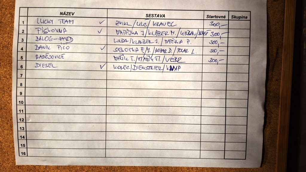 - Trojice z klobouku – losujeme přímo na místě! Možná budeš hrát s kámošem, možná s budoucím mistrem světa.