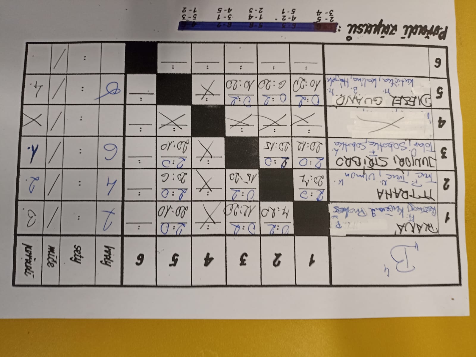Pokud po šesti zápasech zůstane stav nerozhodný, rozhodne dodatečný zápas dvojic.